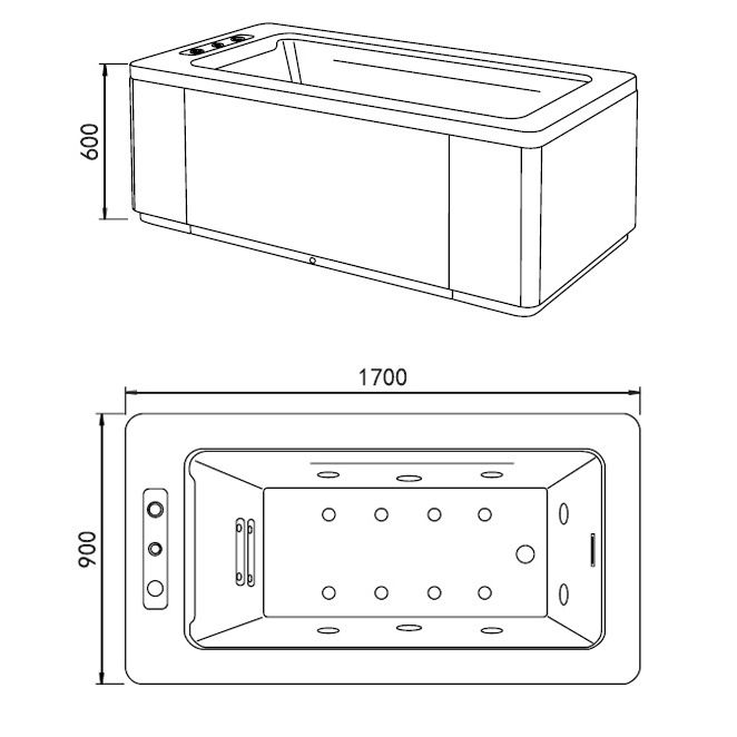 • В комплекте каркас, смеситель с изливом, слив-перелив, каскад по периметру (водопад), душевая лейка и вентили с подъемным механизмом.