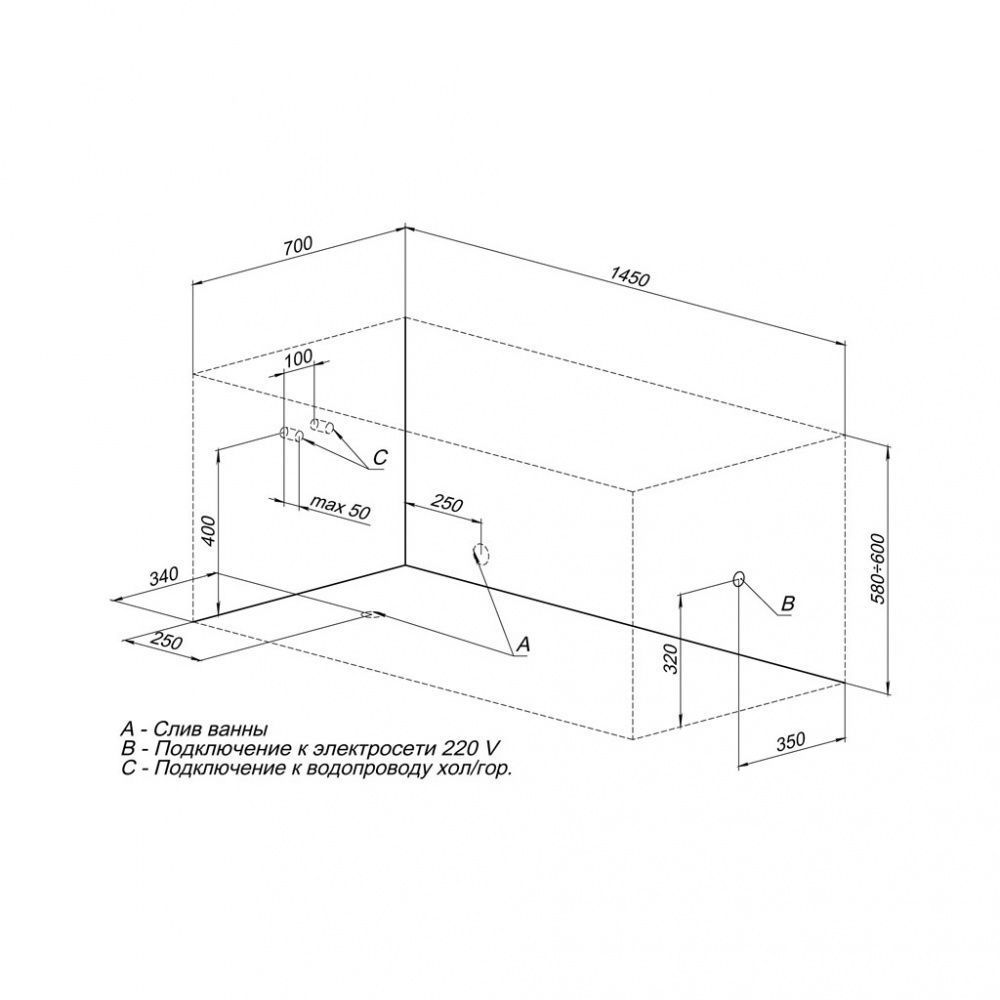 Ширина ванны 70 см при длине 145 см - это отличный вариант для крохотных ванных комнат. Чаша в этой ванне устроена таким образом, что для обозначенных размеров в ней достигнут максимально возможный внутренний объем, а именно 145 литров, и это при комфортной глубине в 413 мм от слива ванны до борта.