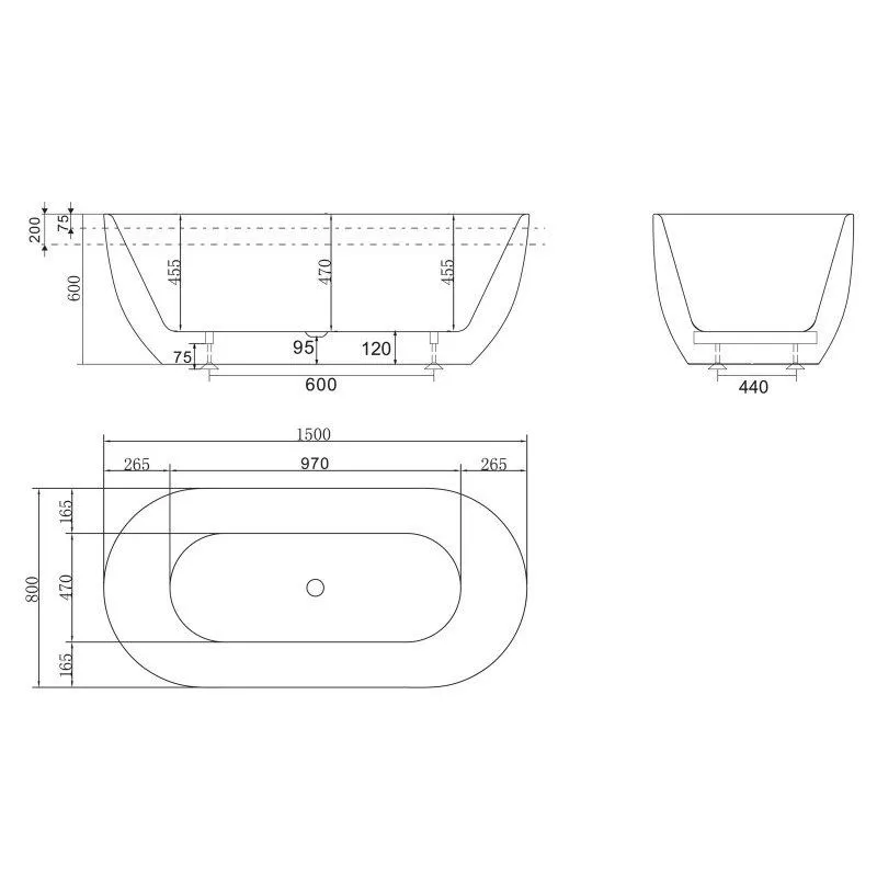 • Расположение перелива: Сливное отверстие посередине дна ванны