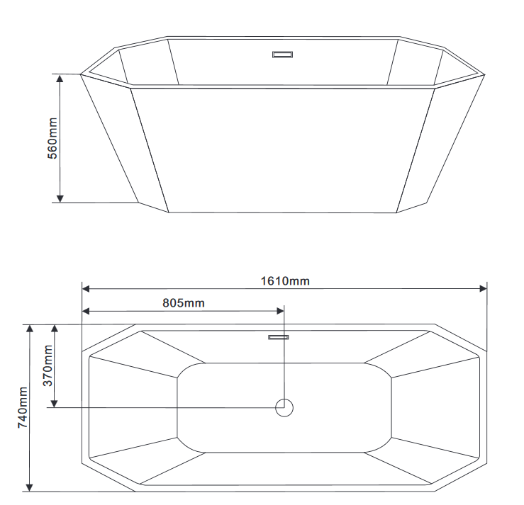 • Отдельностоящая ванна на ножках из 100% акрила (толщина 5 мм) .