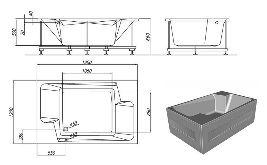- Гидромассаж для ног устанавливается только совместно с гидромассажем для спины или боковым гидромассажем. Также - возможна установка совместно с комплектами Standart, Superior, Luxus, и Magic