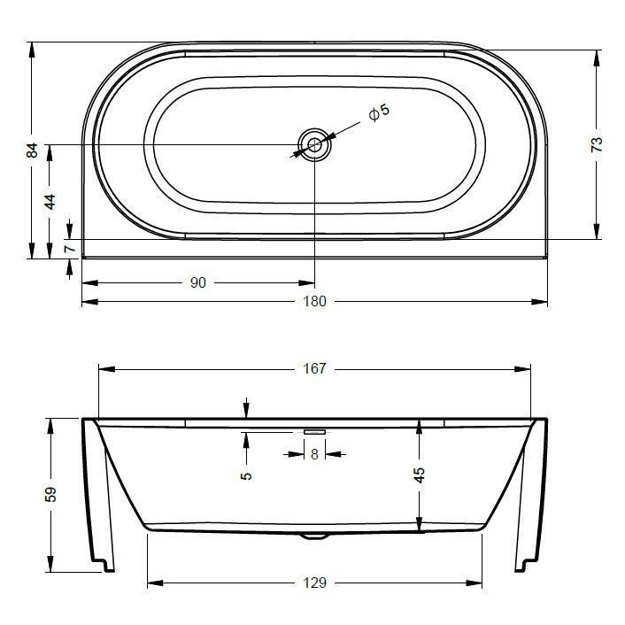 - Ванна акриловая DESIRE WALL MOUNTED 1840x840x590 мм, цвет белый.