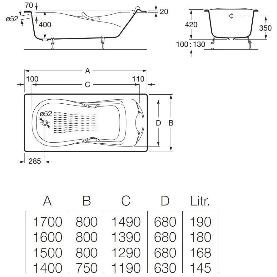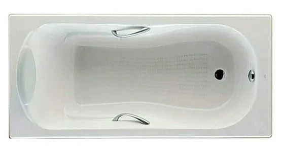 Haiti - эмалированная чугунная ванна с интегрированными подлокотниками, металлическими ручками и противоскользящим покрытием дна. Заземление