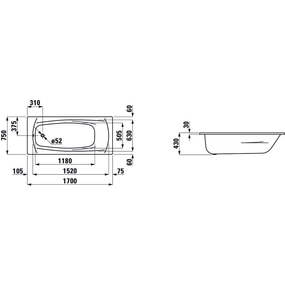 PALADIUM стальная ванна встраиваемая 1700x750 мм, эмалированная сталь (3.5 мм), шумоизоляционное покрытие, с отверстиями для ручек, с антискользящим покрытием, белый