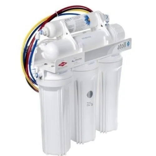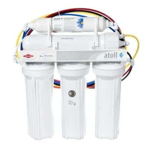 Системы обратного осмоса Atoll предназначены для очистки воды и ее последующего использования для питья, приготовления пищи и других целей. Под этим подразумевается, что предварительная очистка воды проведена муниципальными службами или системами типа Ecowater (в загородных домах, коттеджах) и ее химический и бактериологический состав находится в пределах ГОСТа. Системы обратного осмоса Атолл удаляют до 99,9% всех примесей содержащихся в воде и предотвращают образование накипи в нагревательных приборах. В то же время вода, проходя через фильтр, обогащается кислородом, который дополнительно придает ей приятный свежий вкус. Применяемый в этих системах метод очистки – обратный осмос - не предполагает применения химикатов и осуществляется посредством прохождения подаваемой под давлением воды через специальную мембрану.