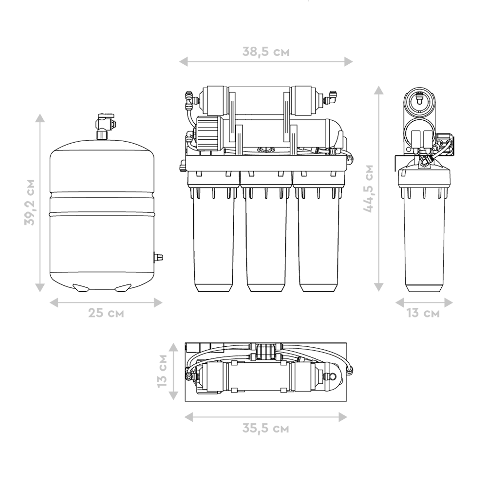 Рабочее давление системы от 3,5 атм. Ресурс до 5000 литров. Накопительный бак - 8 литров. Один обратноосмотический фильтр БАРЬЕР за год помогает уберечь планету от несколько сотен килограмм пластика. По исчерпанию ресурса картриджи можно сдать на переработку.